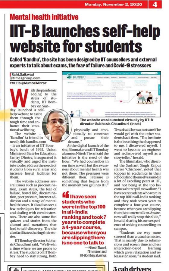 Here's the recording of the launch event, along with the interactive session, where the renowned filmmaker shed light on his experience in IIT Bombay, his struggles with mental health and the importance of mental health and initiatives such as Bandhu.
